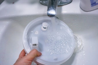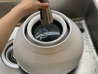 필터 분리 후 흐르는 물로 헹구기